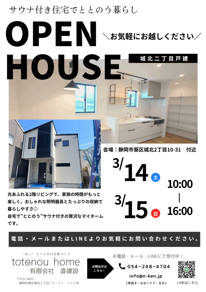 【城北2丁目】3/14・3/15 オープンハウス開催します!